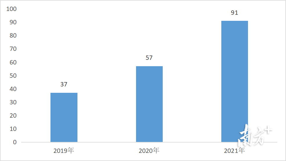 图1:2019-2021年粤港澳大湾区潜在独角兽企业数量 粤港澳大湾区潜在独角兽企业数量增长迅速,2021年潜在独角兽企业同比增长34家,增幅达到59.6%。 广深潜在独角兽企业数量占湾区总量超九成