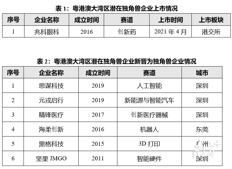 图5:深圳潜在独角兽企业赛道分布 2021年,深圳潜在独角兽企业59家,同比大幅增长84.4%,其中新晋企业37家。深圳潜在独角兽企业主要分布在企业数字运营、机器人、智能硬件、集成电路、网红爆品等24个赛道。 具体而言,一方面,企业数字运营潜在独角兽加速涌现。深圳诞生9家企业数字运营领域潜在独角兽企业,其中新晋企业8家。数字运营领域潜在独角兽企业在多个垂直领域引领企业“数治变革”,包括专注于财税运营工具的法大大、数字营销的积加ERP、数字人力的今日人才、数字运营工具的微言科技和在线协同工具的ONES。 另一方面,智能装备潜在独角兽发展提速。深圳智能装备产业创新研发能力处于全国领先地位,培育潜在独角兽企业13家。深圳集聚6家机器人赛道潜在独角兽企业,占全国近1/3,其中Syrius炬星是国内最早专注AMR(自主移动机器人)软硬件及云服务研发的企业;越疆科技是全球领先的智能协作机器人解决方案商,桌面级机械臂开创者。深圳智能硬件赛道共集聚5家潜在独角兽企业,占全国41.7%,其中雷鸟科技是全球领先的场景互联网及AI×IoT服务平台;影石Insta360是全球领先的全景影像品牌,其产品线覆盖专业VR全景相机、运动相机等领域。 珠海潜在独角兽企业增长迅速,多点开花 2021年,珠海潜在独角兽企业共5家,其中新晋2家,同比2020年增长66.7%。珠海潜在独角兽企业分布在集成电路、创新医疗器械、高端智能装备与器件、人工智能、创新药5个赛道。从地域分布来看,3家分布在珠海高新区,2家分布在横琴新区。珠海市提出坚持“产业第一”推动经济高质量发展,2021年潜在独角兽企业硬科技属性突出。其中芯耀辉致力于先进半导体IP研发、服务、赋能芯片设计和系统应用;艾康特聚焦眼视光领域医疗器械创新解决方案;纳睿达科技掌握全极化有源相控阵雷达关键核心技术并实现产业化;金智维在国内率先推出具有自主知识产权的RPA软件机器人,赋能金融企业实现数字化转型;普米斯聚焦恶性肿瘤及自身免疫疾病,致力于国家一类创新生物药研发及产业化。 潜在独角兽企业壮大发展,6家晋级独角兽行列